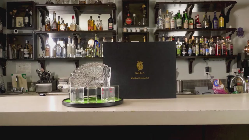 • 37.2oz whiskey decanter with four matching glasses